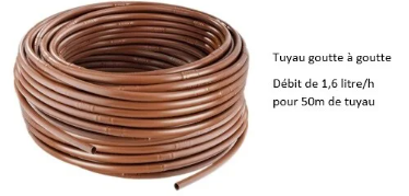 - 50m de tuyaux gouttes à gouttes a un débit de 1,6l/h (0,0016m3/h).